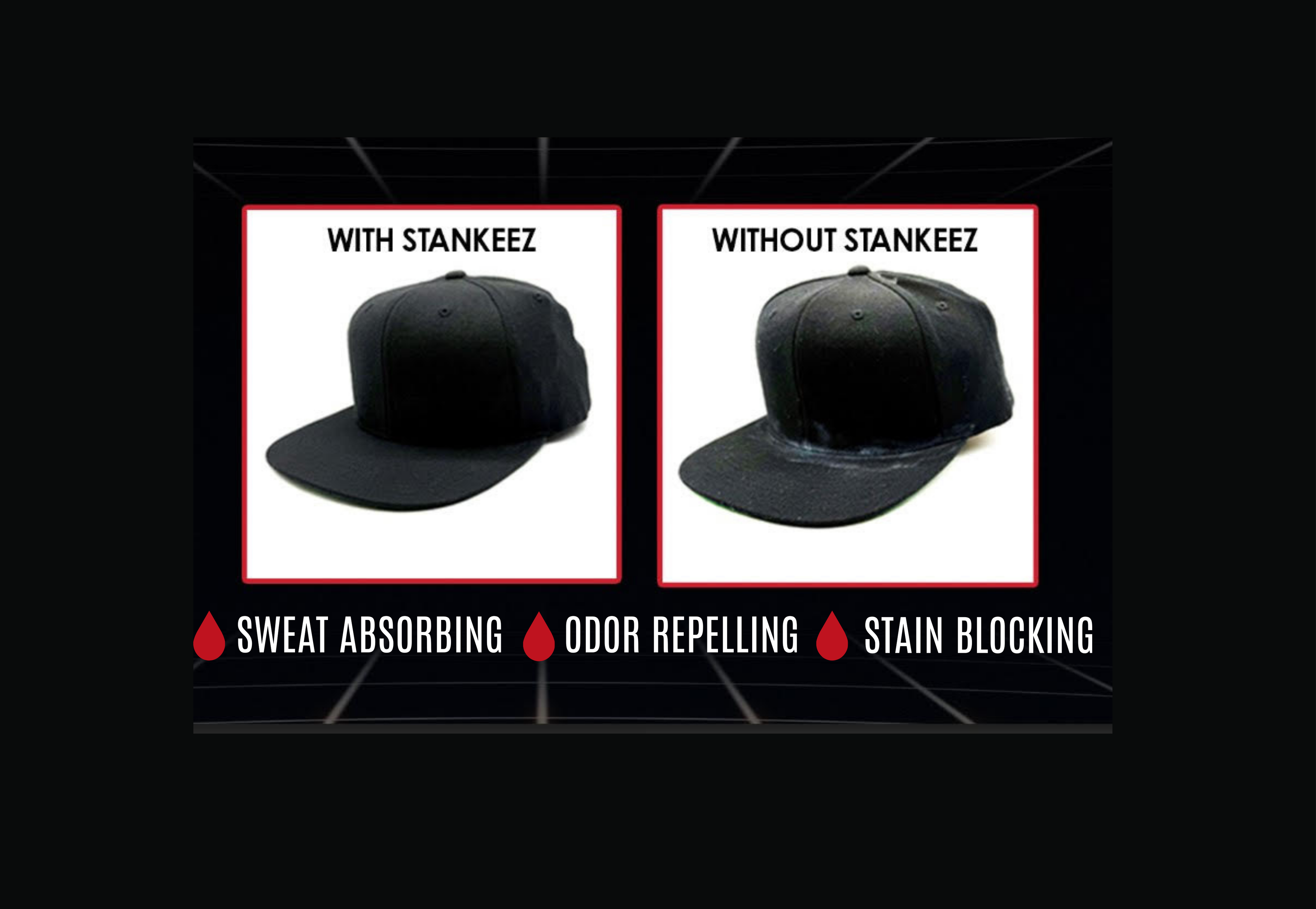 STANKEEZ is a patented hat liner designed to keep your hats clean and fresh. It absorbs sweat, repels odor, and prevents stains—no stickiness, just smart protection.